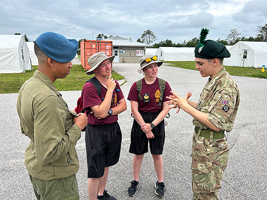 Each cadet, no matter their country of origin, arrived on July 9 to complete training in one of four disciplines Advanced Aviation, Survival Instructor, Drill and Ceremonial, or Expedition Team Leader. These courses are built to provide safe, fun, and engaging activities for youth, and build skills that will help lead them into adulthood.