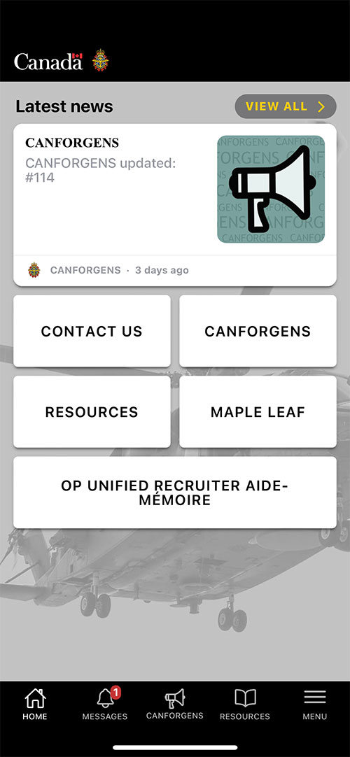 The Operation UNIFIED RECRUITER Aide Memoire is now available on the Canadian Armed Forces mobile app!