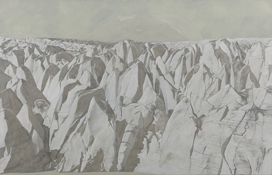 Leslie Reid, Llewellyn I 59°04'N; 134°05'W, 2014. 32" x 50", oil and graphite on canvas, collection of the artist