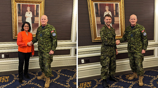 CF RP Ops Gp Comd Presenting Command Coins to Neelima Deshmukh (Left) and Maj Dave Larrett (Right) for Organizing a Successful CTC