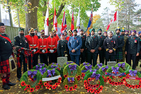 Remembrance Day, bringing together political leaders, veterans, and the local community to honor the legacy of Sikh soldiers in Canada. The event specifically commemorates Private Buckam Singh, one of the first nine Sikh soldiers allowed to serve in the Canadian military during World War I