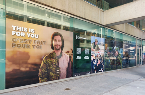 - new eye-catching decals on the windows of 23 Canadian Forces Recruiting Centres across the country.