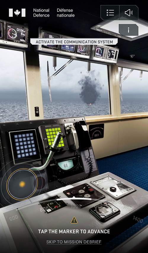 This interactive virtual experience transports the user into one of three engaging CAF scenarios, representing the Navy, Air Force, and Army environments. Choose your adventure and: