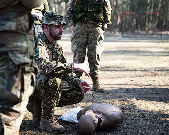 The medical training program, led by Poland and supported by the Canadian Armed Forces since March 2023, focuses on advanced tactical medical skills and combat survivability. Canadian instructors like Sgt MacAulay also learn from their Ukrainian counterparts, who share their frontline experiences.