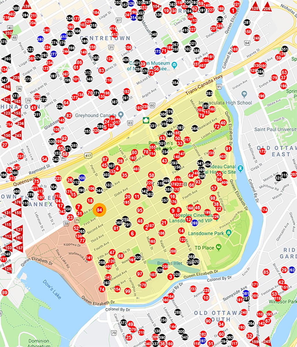 My original goal was to map only residents of the Glebe or former students at Glebe Collegiate who were killed or died while on active service. To map these men, I needed to extend the map of the Glebe beyond the recognized boundaries of the neighbourhood, as many students of the high school lived outside the neighbourhood. In the end, it seemed the full complete story could not be told unless I mapped each and every one of the fallen—aviator, soldier or sailor—whose next-of-kin resided within the edges of my map, regardless of their connection to the Glebe.