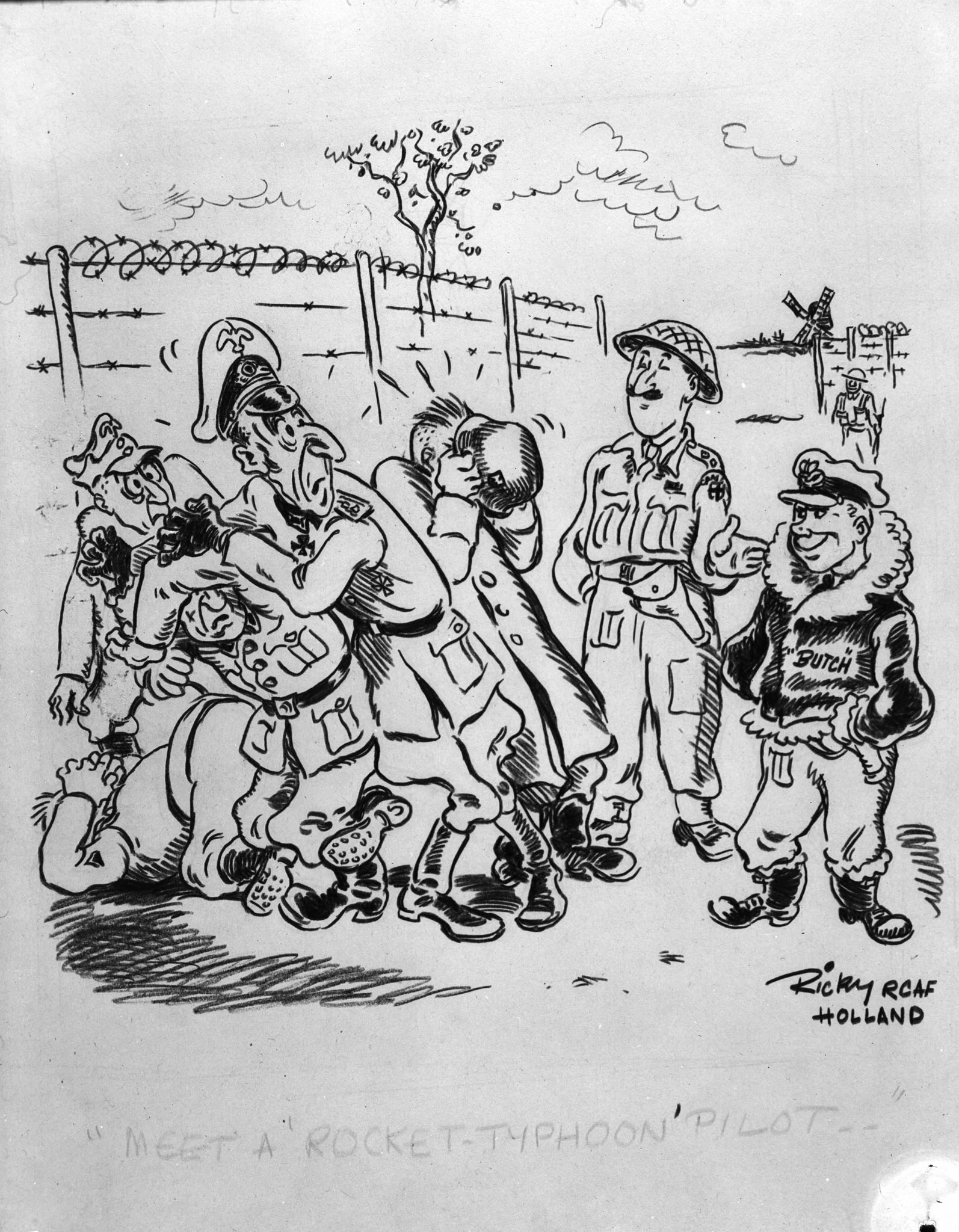 Three Mustangs from 430 Squadron were sent on a low-level pass over some roads just inland from the beaches in search of German transport when they were “bounced” by four German FW-190s during one of the rare Luftwaffe attacks on D-Day. The fight was brief, but deadly for the Canadians. Flying Officer Jack Scott Cox, 23, from Brockville, Ontario, was shot down and killed. With the arrival of two more enemy fighters, the remaining Mustangs beat a hasty retreat.
