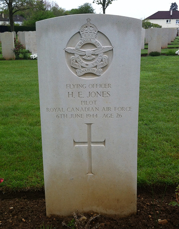 Flying Officer Harvey Edgar Jones, a pilot with 233 (RAF) Squadron. Killed in action when his Dakota aircraft was shot down during the airborne assault. From Welland, Ontario, age 26. Buried in the Ranville War Cemetery, France.