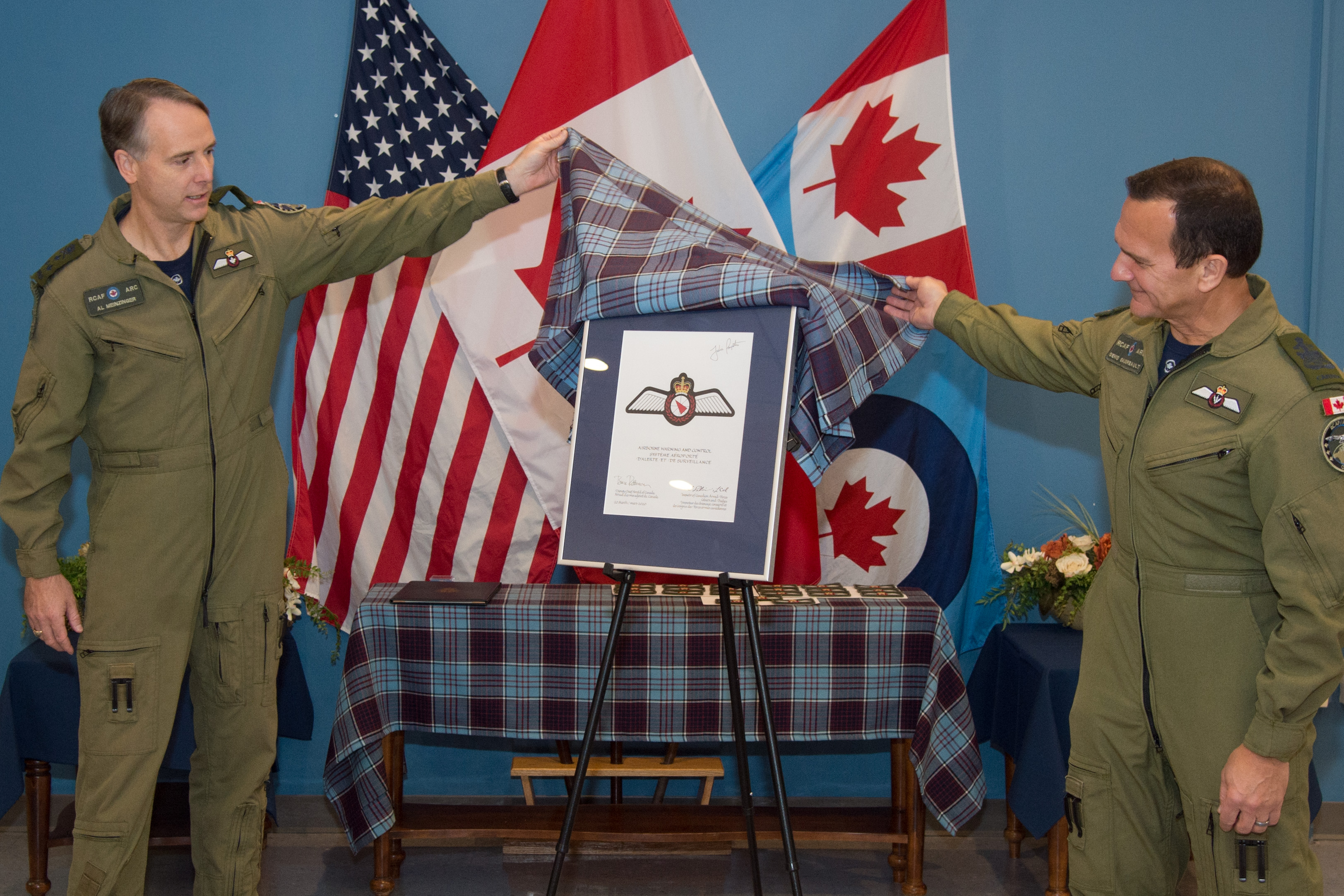 The Commander of the Royal Canadian Air Force (RCAF) unveiled the new Airborne Warning and Control System (AWACS) aircrew badge (‘wings’) at North Bay’s 22 Wing/Canadian Air Defence Sector on Friday, October 23.