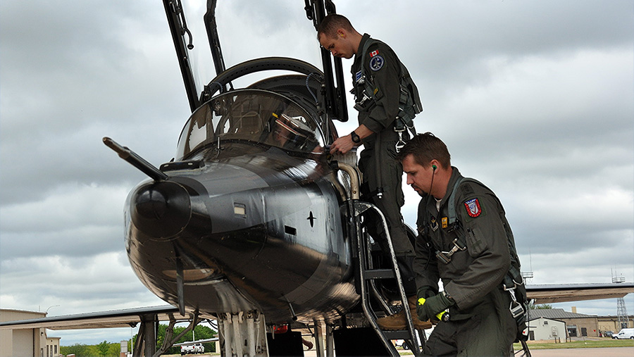Canadian students arriving at Sheppard are first trained via the Undergraduate Pilot Training program training on the United States Air Force T-38C Talon, a modernized aircraft dating from the early 60s that continues to prove itself a capable fighter trainer. Upon completion of their undergraduate program, students move on to Introduction to Fighter Fundamentals, preparing them for the cockpits of Canada’s current and future combat aircraft.