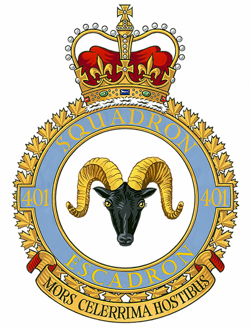| Re-established on June 30, 2015, at 4 Wing Cold Lake, Alberta, 401 Tactical Fighter Squadron traces its roots to the First World War, when it was originally No. 81 (Canadian) Squadron in the Royal Air Force before becoming No. 1 Squadron, Canadian Air Force. Although disbanded and reformed a few times, it was re-established in 1935 and went on to see service as a fighter squadron in the Second World War. It saw action during the Battle of Britain – where it became the first Canadian squadron to engage in combat against the Luftwaffe – and later over the English Channel, North Sea, France and Germany.. It stood down briefly following the war, then re-activated, seeing service through the Cold War era. It eventually became a Reserve Force helicopter training squadron before being disbanded in 1998. The squadron and its personnel are known as the “Rams”, which is a reference to the mountain sheep – indigenous to many parts of Canada and known for its great stamina and fighting power – that is shown at the centre of the squadron’s badge. The squadron’s motto is Mors celerrima hostibus, which is Latin for “The swiftest death for the enemy”. |