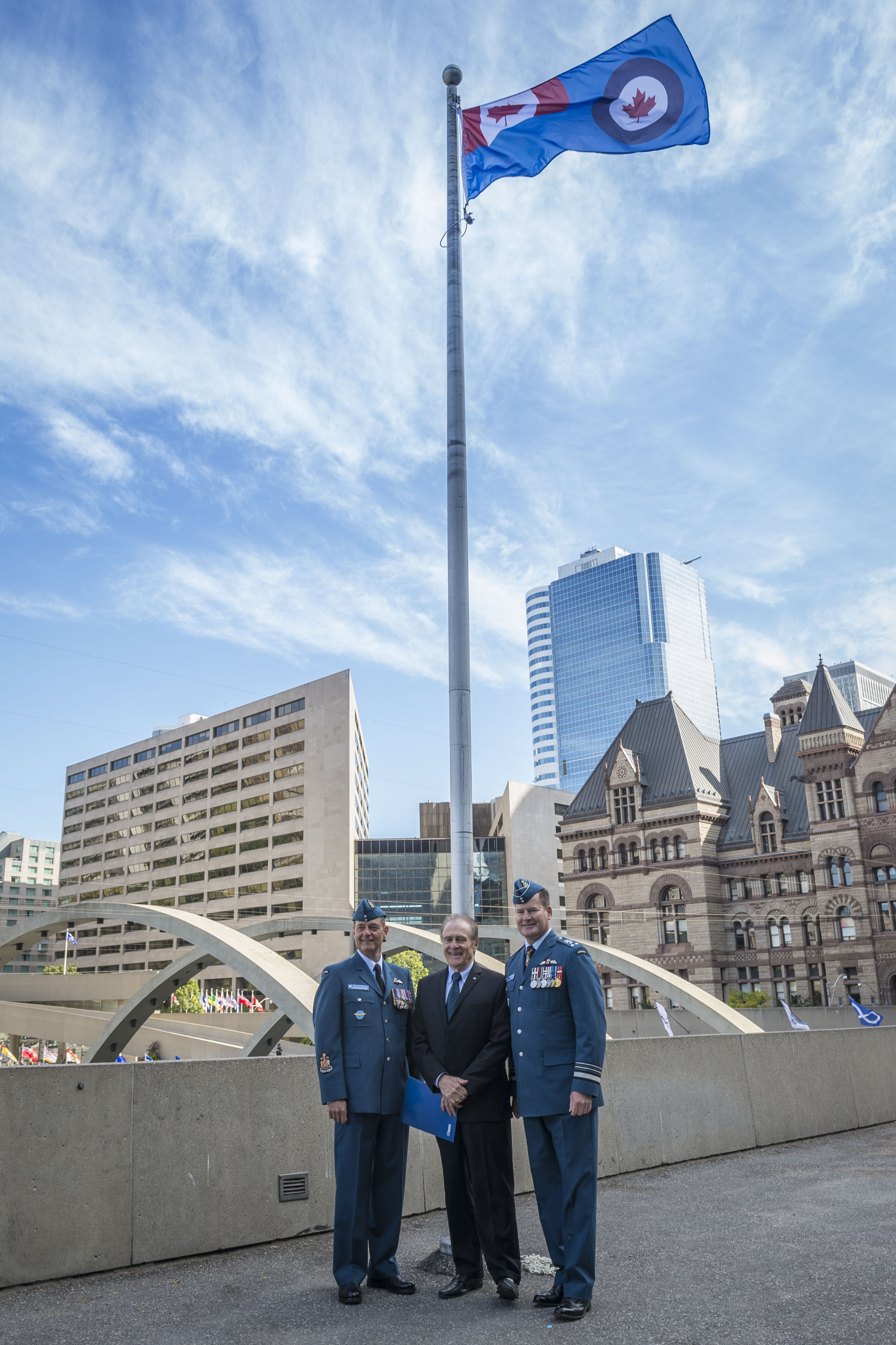 “As Torontonians, we are thankful for the service and sacrifice of every member of the Royal Canadian Air Force,” he said. “We thank you for your commitment, dedication and courage. It is an honour to raise this flag and have it fly in front of City Hall today.”