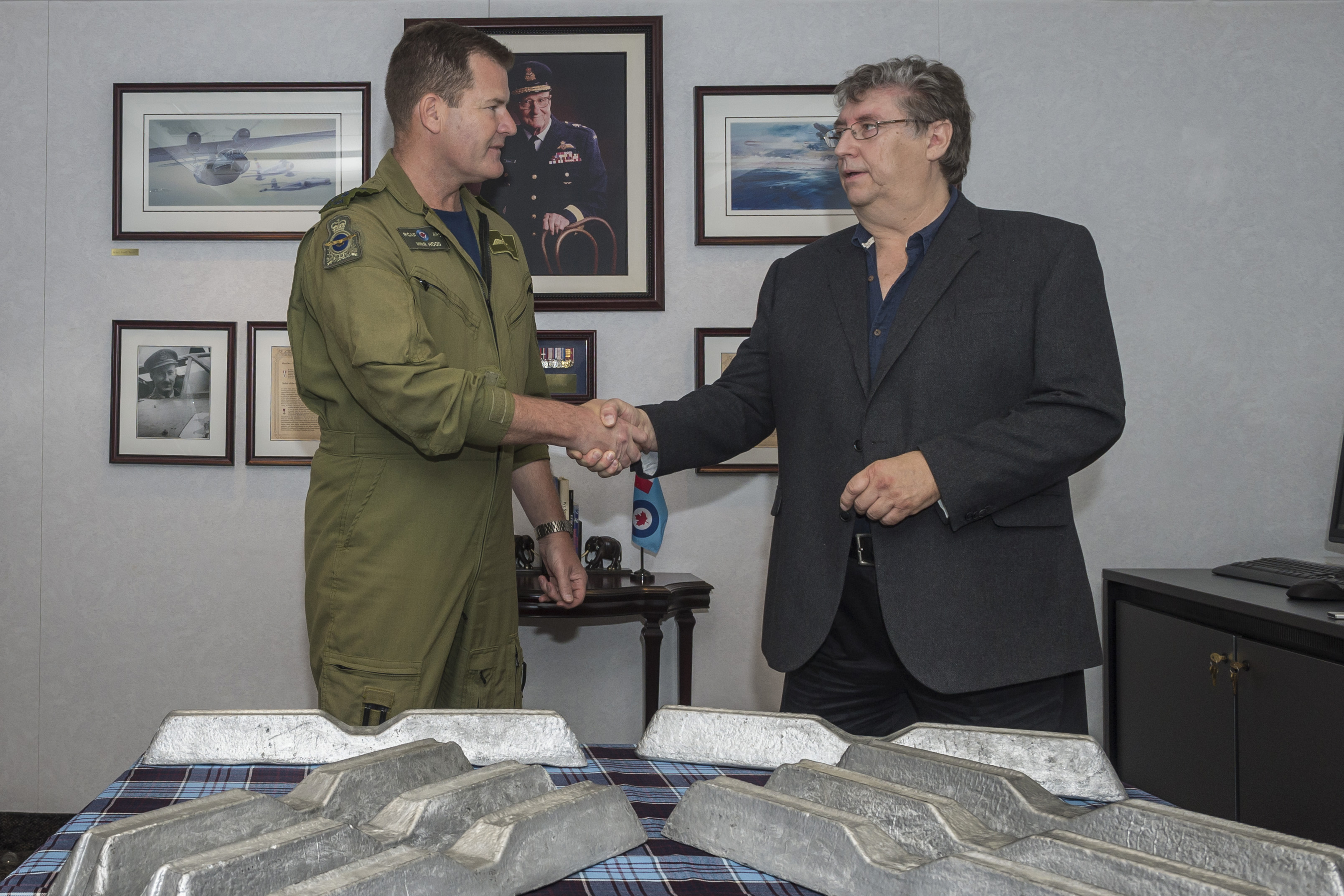 On June 28, 2017, the commander of the Royal Canadian Air Force, Lieutenant-General Mike Hood, accepted eight ingots of aluminum that had been cast from the melted down wreckage of LW682. Their destiny? At least two of them will become a tangible reminder of RCAF history and heritage, worn by members of RCAF aircrew.