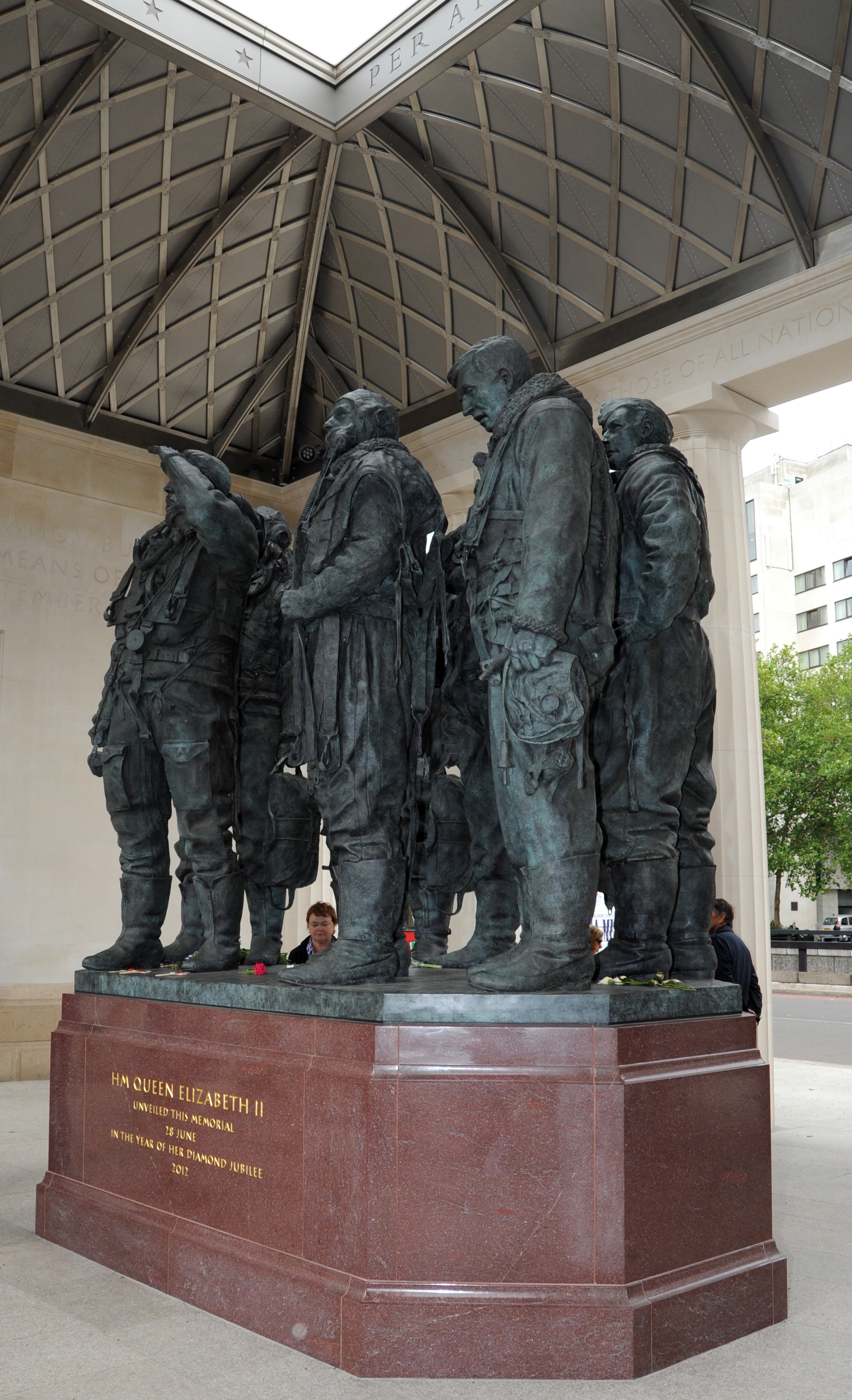 This is not the first time aluminum from LW682 has been put to good use. The roof of the Bomber Command Memorial in London, England, unveiled by Queen Elizabeth II on June 28, 2012, is constructed from LW682 aluminum. In September 2012, Prince Edward, Earl of Wessex, unveiled a memorial to the crew of LW682 at 8 Wing Trenton, Ontario. Polished ingots, each engraved with the name of a crew member, are embedded in a memorial wall at the Air Mobility Training Centre.