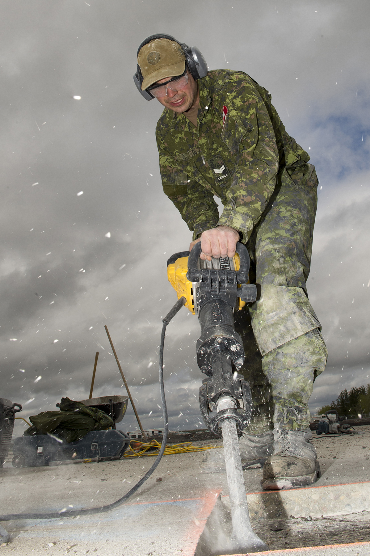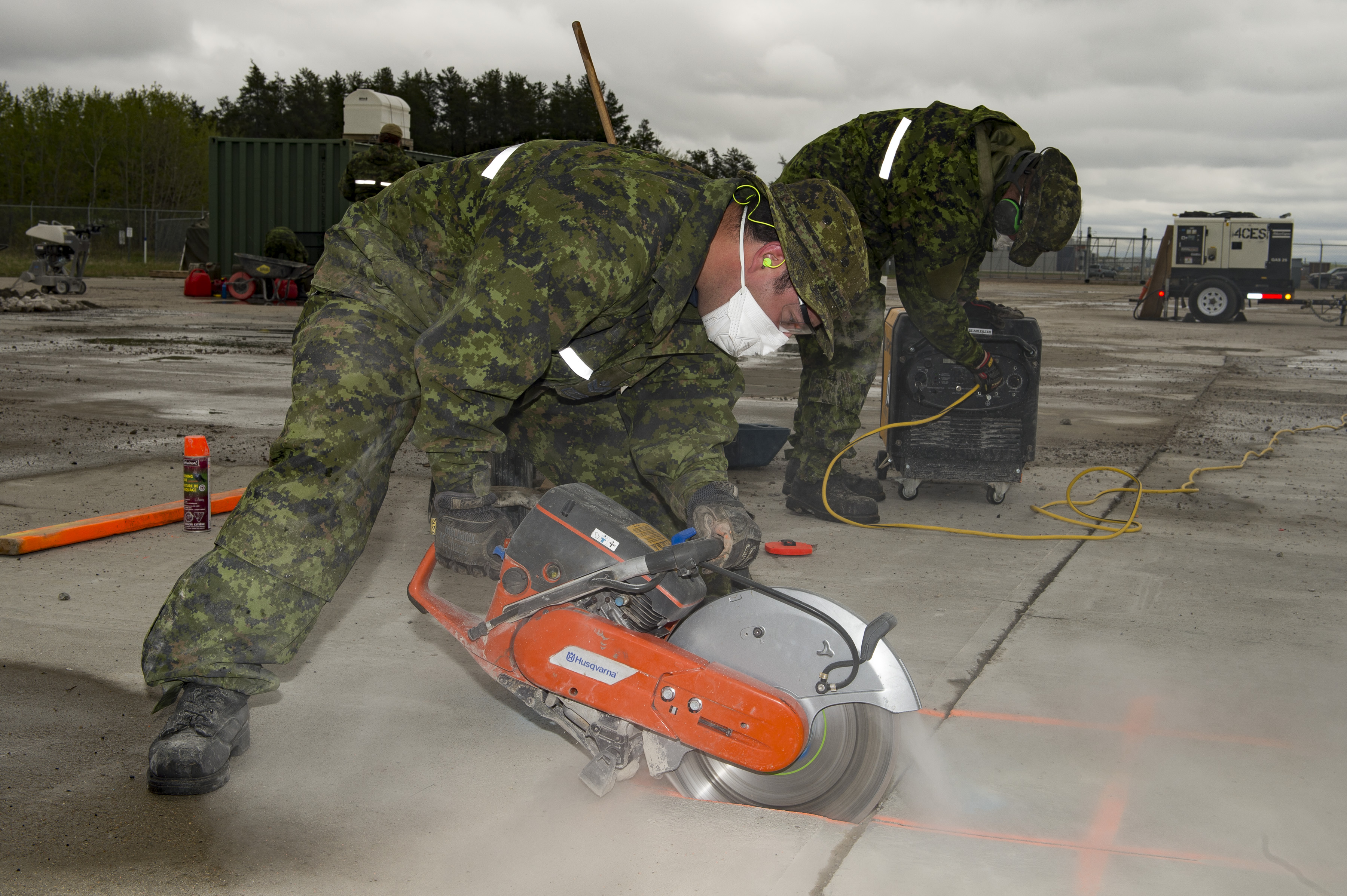 Runway repair skills are particularly important on military humanitarian missions, especially after an earthquake or major flooding. Airfields are often damaged and the technicians from 2 Wing Bagotville, Québec, who are deployed first, have the right capabilities to assess runways and make temporary repairs to surfaces so that they can accommodate landings of aircraft carrying equipment and provisions to aid the country in distress.