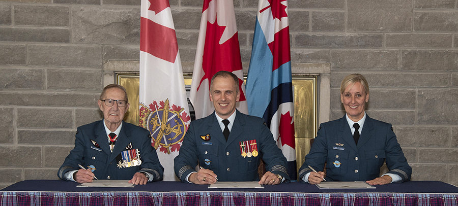 Colonel Pascal Godbout, commander of 16 Wing, presided over the investiture ceremony. Colonel Andrew Atherton, commander of Canadian Forces Base Borden where 16 Wing is a lodger unit, and Chief Warrant Officer Michael Charette, base chief warrant officer, were among the guests in attendance.
