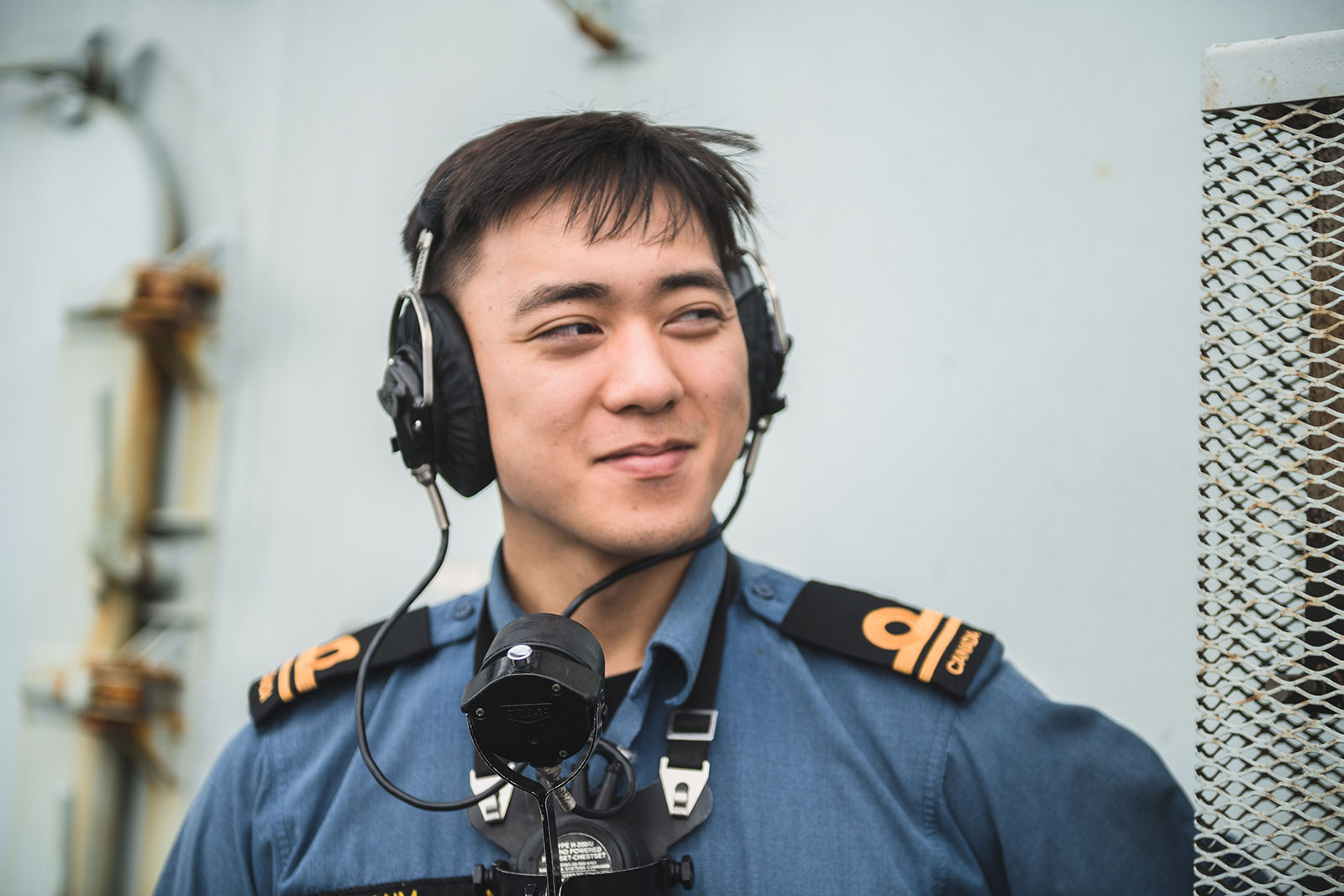 “One of the highlights of this deployment for me was being able to come alongside Busan. I’m glad Ottawa had a chance to appreciate my family’s hometown and it made me proud to be Korean-Canadian,” says Sub-Lieutenant (SLt) Hyunji (Ann) Lee, bridge watchkeeper-under-training.