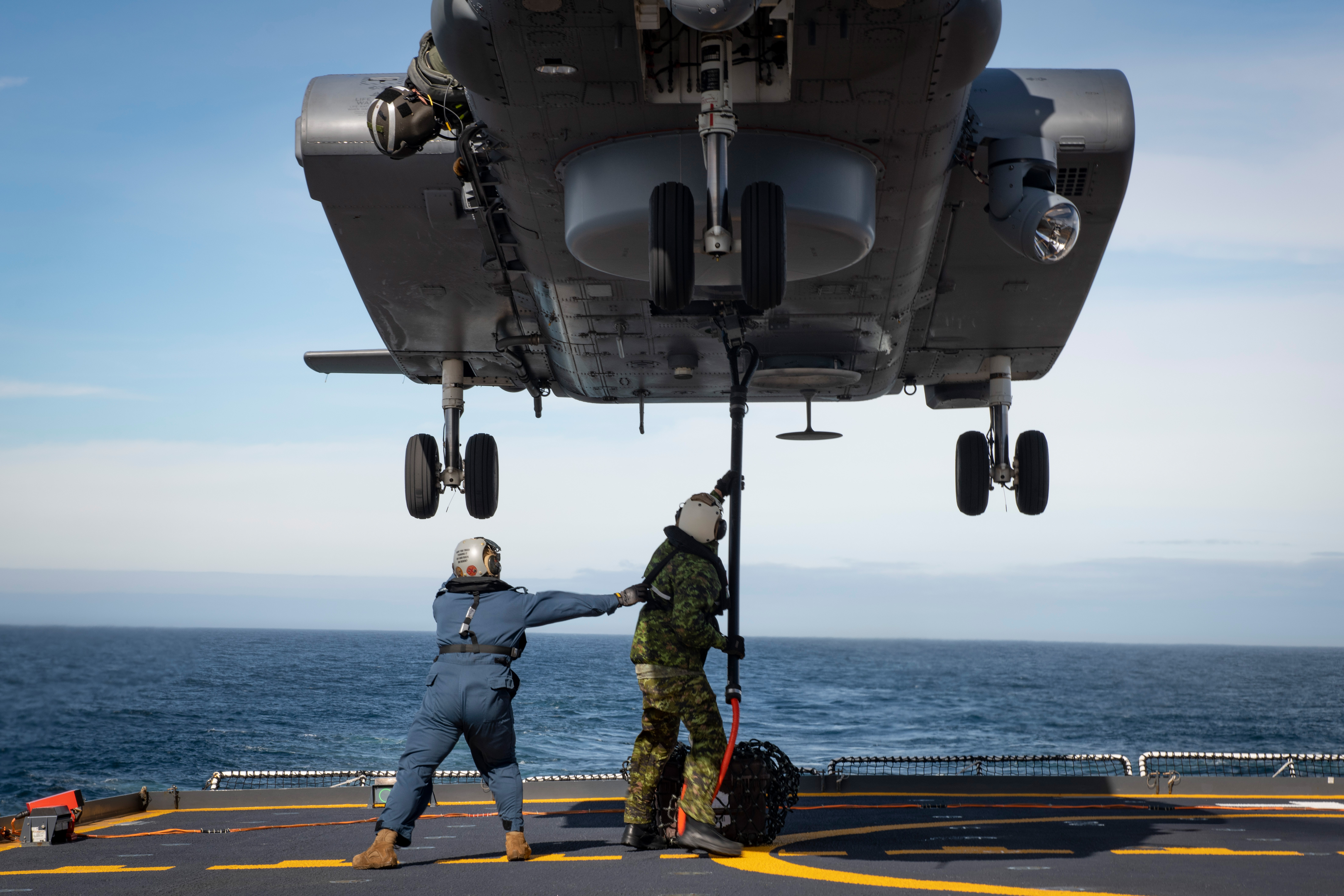 “Basically, the Aerospace Engineering Test Establishment, a specialized group of engineers, pilots and technicians, needs to verify that Harry DeWolf will be safe to work with and land helicopters on our flight deck,” explains Lieutenant-Commander Jim Little, Harry DeWolf’s Executive Officer. “This work is extensive but critical in certifying the ship for helicopter operations not only with the Cyclone, but also with the multitude of Allied helicopters flown throughout the world.”