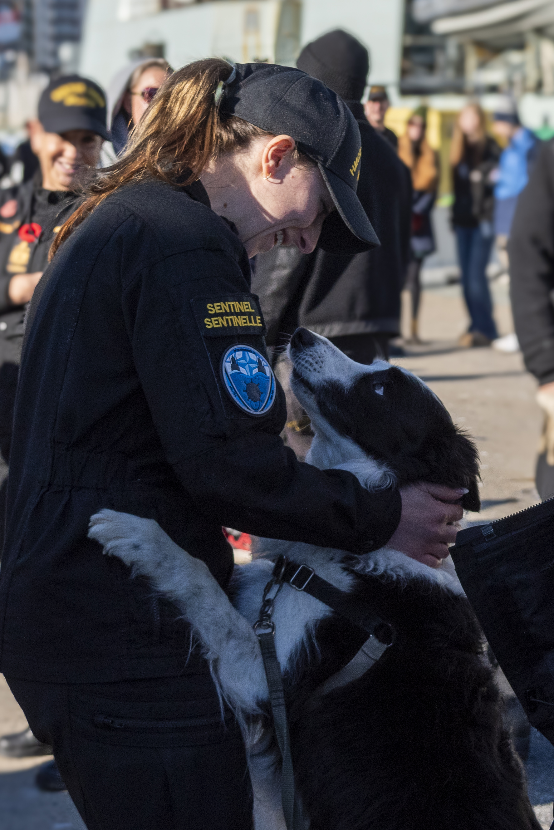 A Royal Canadian Navy member is welcomed back home by her dog.