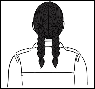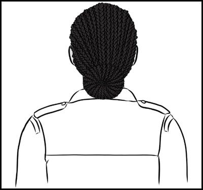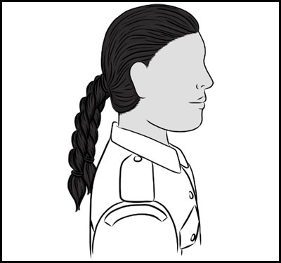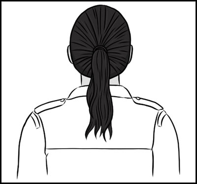 - hair that extends below the tunic jacket collar shall be secured in one of the following styles: