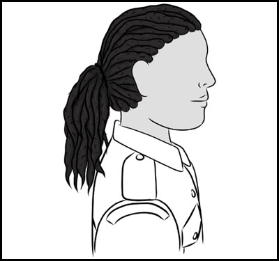 - Hair shall not prevent the proper wear of a military headdress or protective equipment. Hair must be worn so that without a headdress the cadet’s face is visible. Full or partial shaving of hair on the head is permitted. Colouring of hair is permitted. The wearing of wigs, dreadlocks, or hair extensions is permitted. Long hair is permitted but must be secured accordingly when extending below the top / ridge of the shoulder in such a manner to prevent hair from covering the face. Acceptable accessories to secure hair include, but are not limited to, clips, barrettes, bobby pins, fabric elastics, elastic bands, and hair nets.