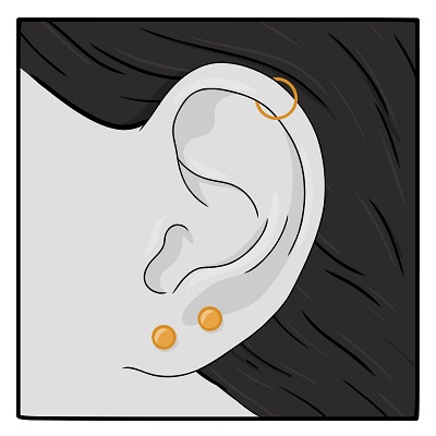 - Earrings. Cadets in uniform may have multiple ear piercings as well as ear gauges / spacers of no more than 2.5 cm square or diameter. (See Figure 2-2-4)