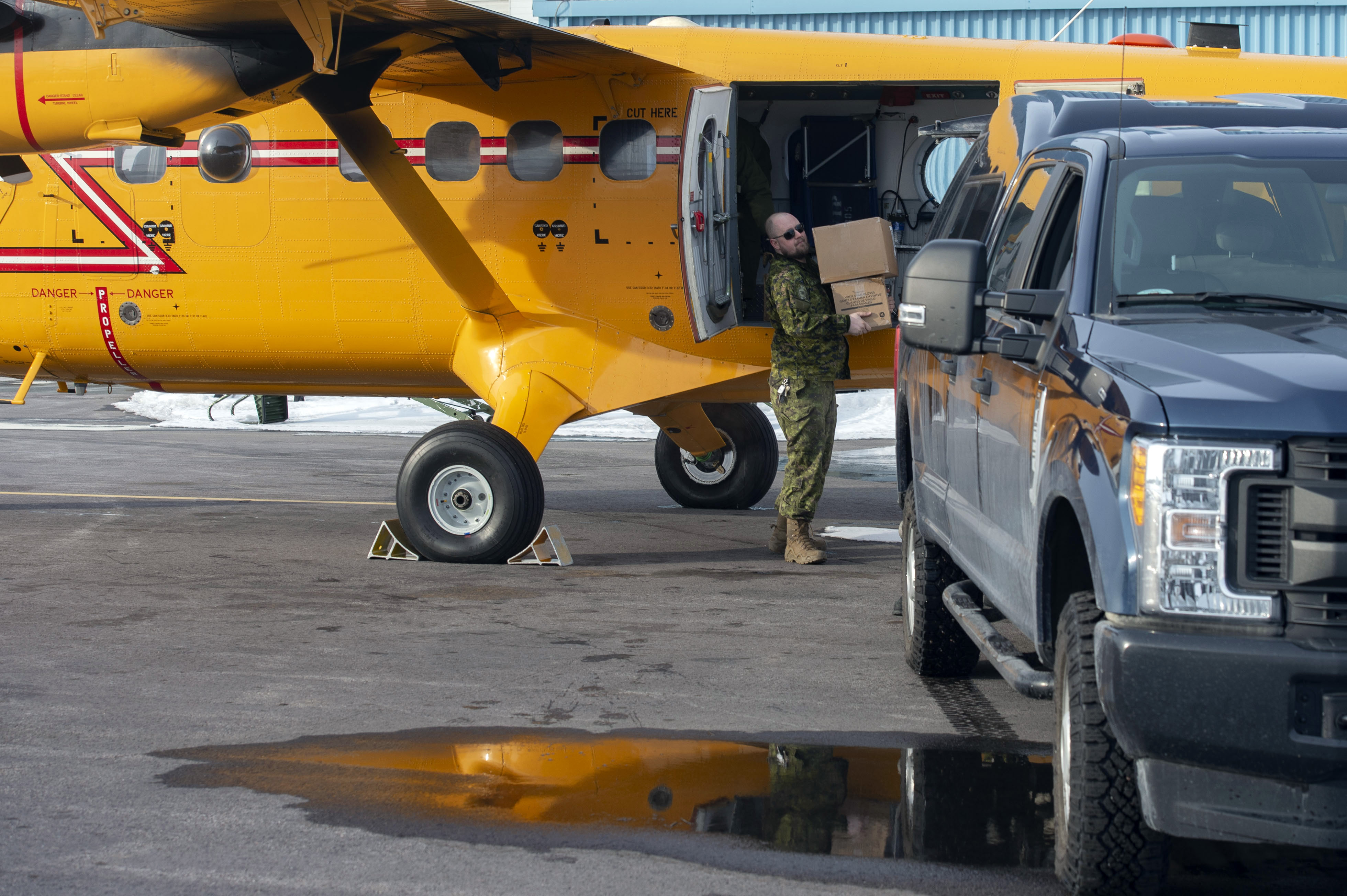 CAF personnel deployed into the community via a Royal Canadian Air Force (RCAF) CC-138 Twin Otter aircraft.