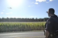 The CAF supports Operation SABOT with Royal Canadian Air Force (RCAF) aircraft and crews. The RCAF helps the RCMP to look for marijuana grow-ops from the air. The Canadian Joint Operations Command tasks RCAF crews and aircraft. They are directed through the Joint Force Air Component Commander in Winnipeg, Manitoba.