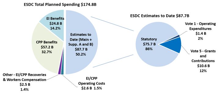 Employment and Social Development Canada (ESDC) is the largest federal service delivery organization in Canada, delivering benefits and services to support Canadians at all stages of their lives. Since the beginning of the pandemic, ESDC has worked tirelessly to manage efficiently the processing of EI applications and call volumes and issued more than $36.4 billion in EI benefits in 2021 to 2022.