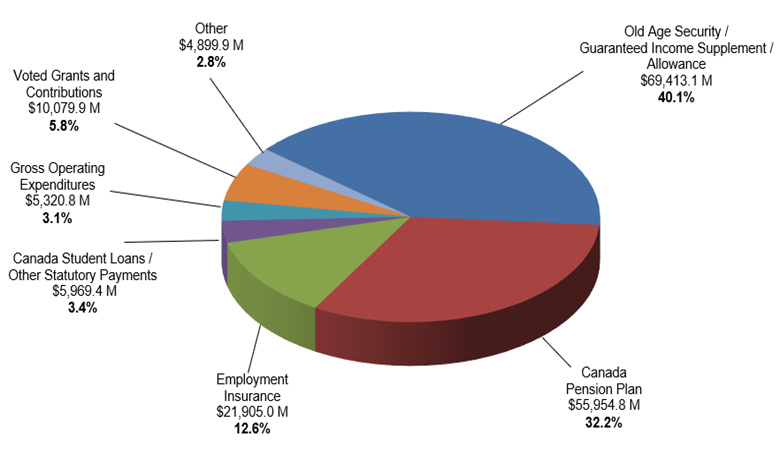 Operating and capital expenditures; transfer payments to other levels of government, organizations or individuals; and payments to Crown corporations.