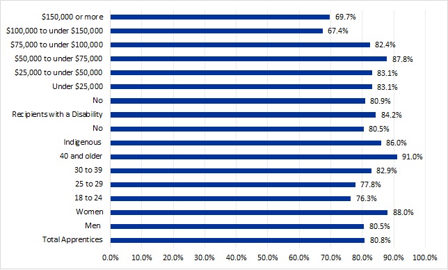 - Figure 14: Proportion of apprentices paid by employer during technical training by selected group (N=1,825)