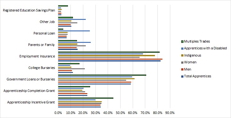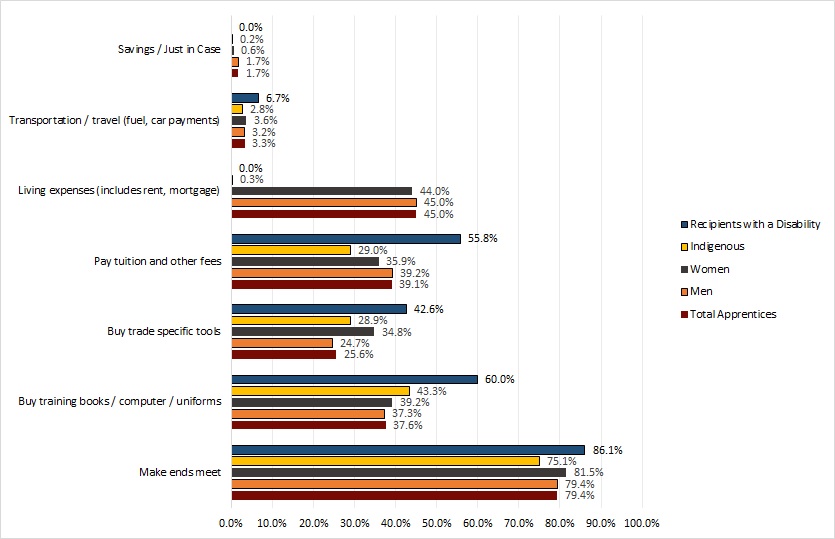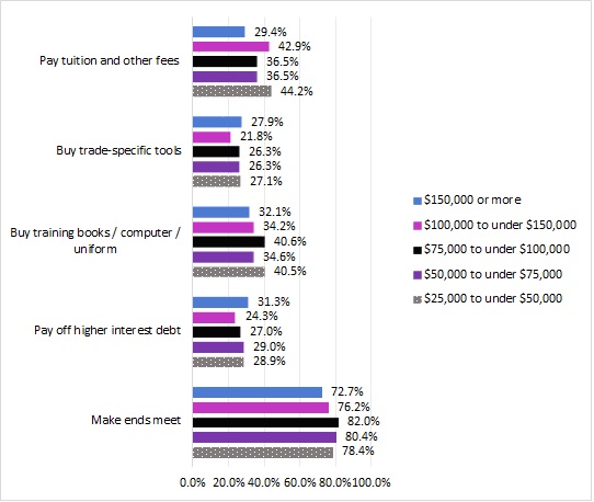 | Trade Group | Make ends meet | Buy training books / computer / uniform | Buy trade-specific tools | Pay tuition and other fees |