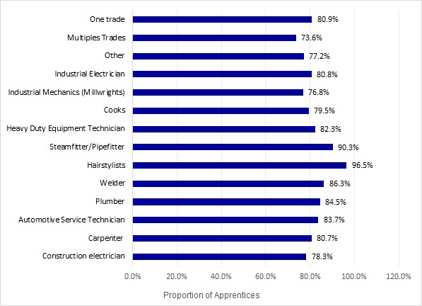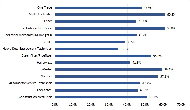 | Industrial mechanic (Millwrights) | 76.2% | 41% | 31.5% | 33.7% |