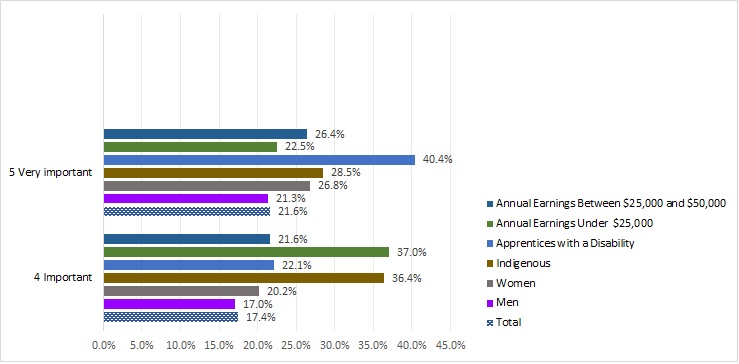- Figure 3: Level of importance of the loan in covering the costs of apprenticeship by subgroup (N=1,083)