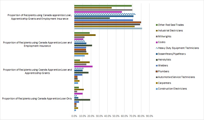 - Between 2015 and 2017, 74.1% of the loan recipients were also using both Apprenticeship Grants and Employment Insurance benefits
