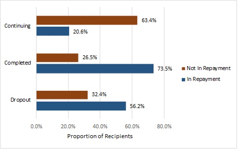 - In general, about 10% of recipients start repaying their loan before completing their training