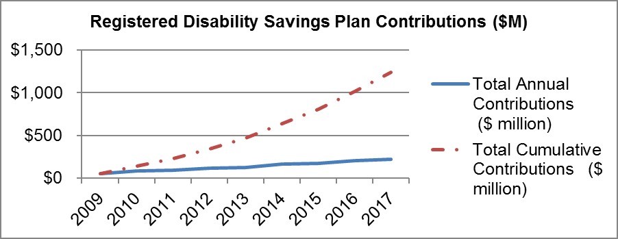 - Figure 4: Annual and Cumulative Registered Disability Savings Plan Contributions, 2009 – 2017