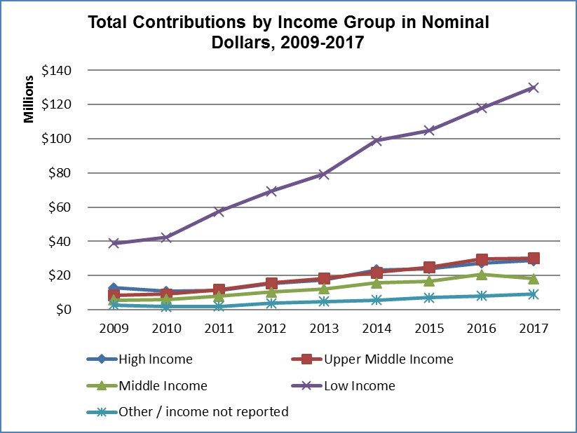 - Figure 6: Total Contributions by Income Group in Nominal Dollars, 2009 to 2017