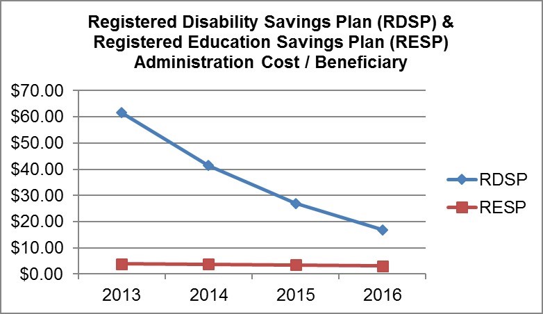- Figure 7: Cost / beneficiary by year for Registered Education Savings Plan and Registered Disability Savings Plan, 2013 to 2016