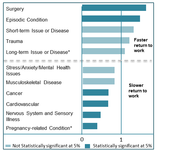 - Figure 11: Speed of return to work by type of illness or injury