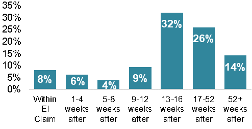 Further, the survey analysis has limitations due to the intrinsic uncertainty associated with linking survey results to administrative data. Specifically, the analysis of time before a return to work requires a separation date derived from the Record of Employment (ROE) to determine when the leave begins, while the end of the sick leave is determined by survey data indicating the month in which a return to work occurs. This issue is handled to the best extent possible by selectively choosing between possible ROEs for consistency between survey results and administrative data. However the process is imperfect and relies on accurate recall on the part of survey respondents of events which might have occurred over 2 years prior to them being surveyed.