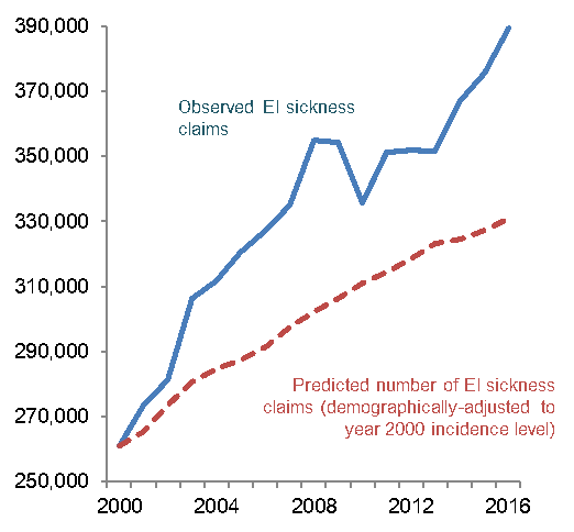 - there has been significant growth in claims for the EI Sickness benefits nationally since 2000 that can be explained, in part, by demographic changes, and