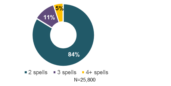 - Figure 17: Number of spells for regular claims with multiple sickness spells, 2016