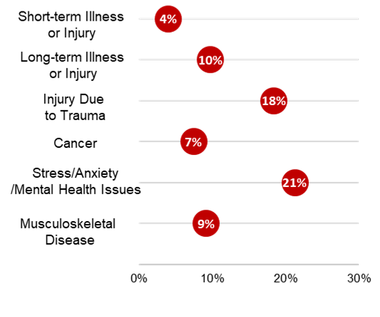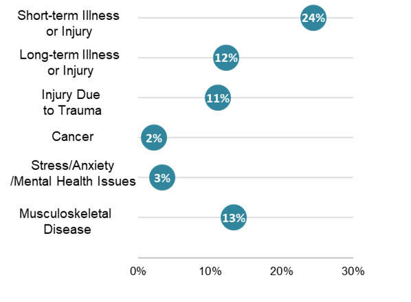 - Figure 20: Share of 171 survey respondents who reported illnesses or injuries for pure sickness claims with multiple sickness spells