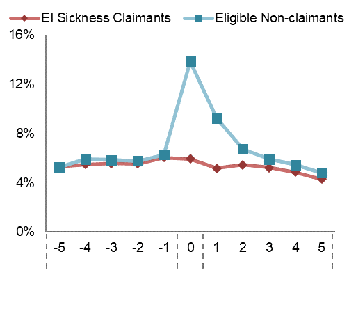 - Figure 5: Difference in total income between EI claimants and comparable non-claimants following a 2011 illness separation