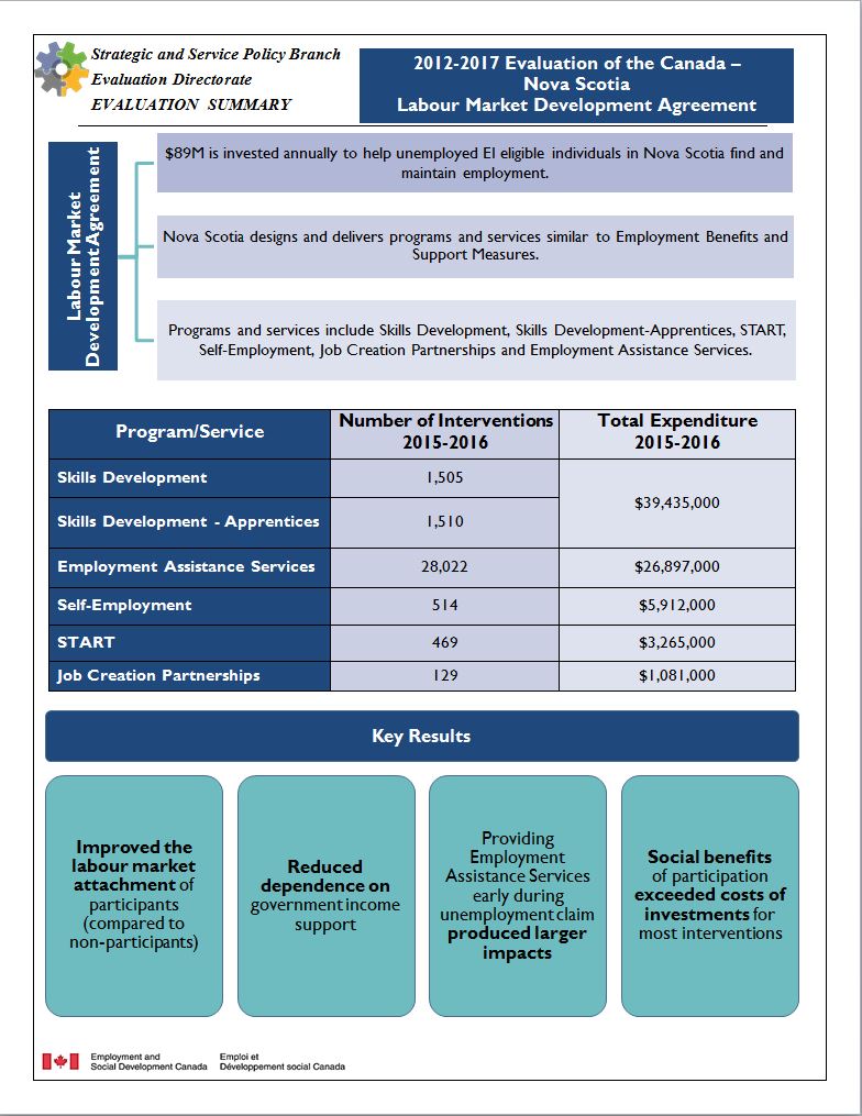 2012-2017 Evaluation of the Canada-Nova Scotia Labour Market Development Agreement Summary