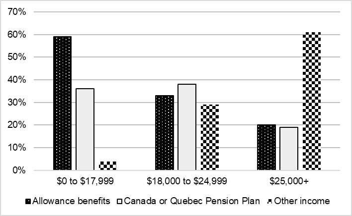 - Figure 2: Sources of total income of the recipients of the Allowance for the Survivor in 2016, by income range