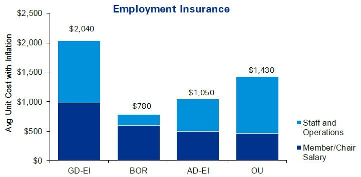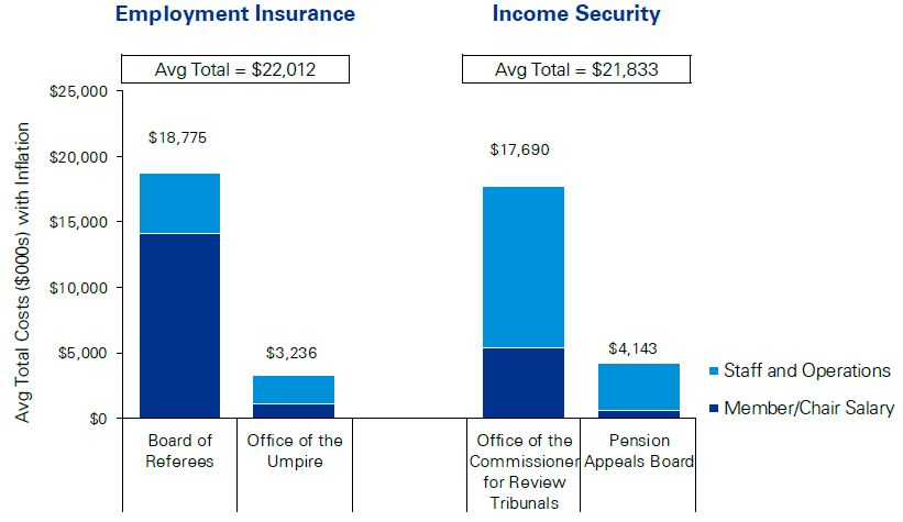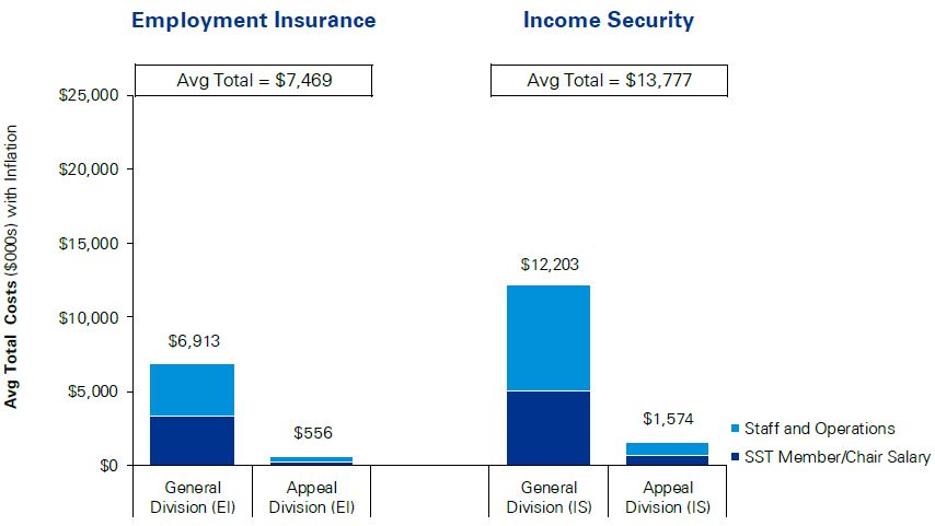 - Notwithstanding the challenges that the SST faced with transition, the total cost of the SST is lower than the total cost of the four legacy tribunals combined. However, the average cost per EI appeal to the SST General Division is significantly higher than under the former Board of Referees. The average cost per other appeals to the SST is lower than what it was under the three other legacy tribunals.