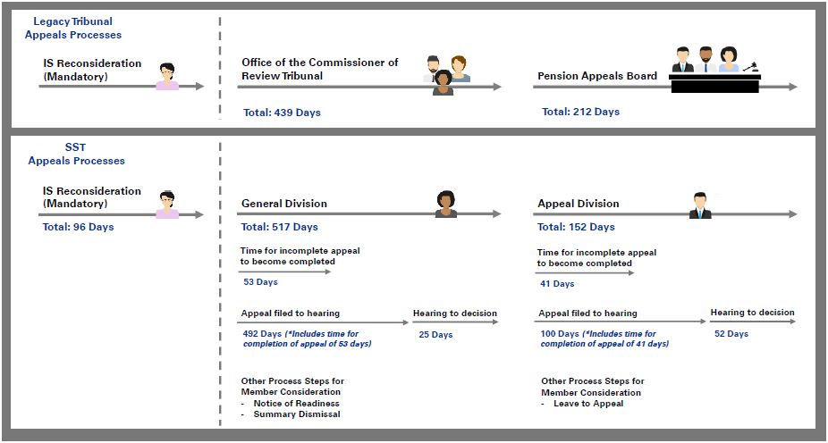 - The time it takes claimants to have their appeal heard because of the lack of SST staff/members and the lack of a time limit to issue decisions