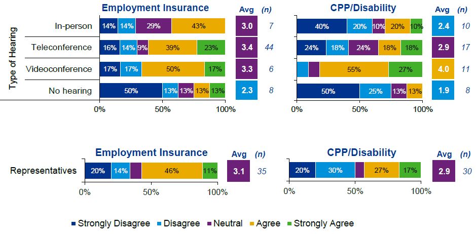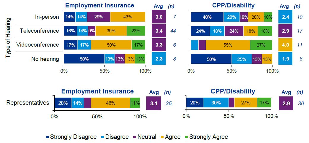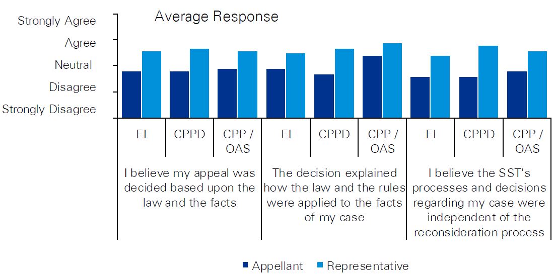 These perspectives were important to listen to and understand. The perspectives informed and corroborated the analysis of costs, operating results, and client satisfaction of the SST as compared to the former tribunals and external comparator tribunals that hear social benefits appeals.