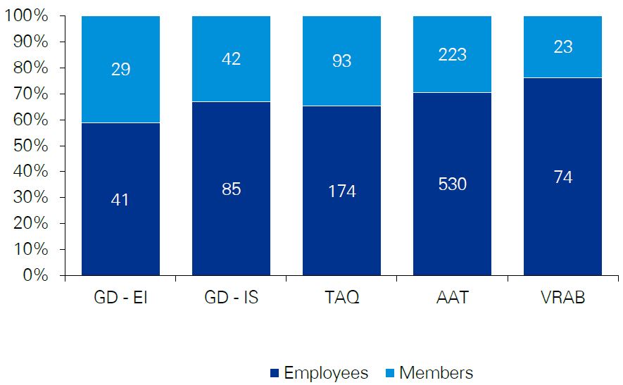 There were 62 participants in the employee survey; of those 38 participants (or 61%) were employees of the SST/ATSSC and the remainder employees of a legacy tribunal. With respect to the previous tribunals, more than half the respondents were employees of the Board of Referees. In addition 46 of the participants indicated they were employed with only one of the tribunals, while the remaining 16 participants had been employed by two or more of the tribunals (either the SST/ATSSC and a legacy tribunal or more than one legacy tribunal).